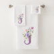 Le design présente Monogram plus Flowers dans un design floral. Initiale est la lettre J. Serviette personnelle.