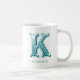 Tasse à café blanc personnalisable avec la lettre K dans une typographie turquoise unique. Ajoutez votre nom à l'aide de la fonction de personnalisation.
