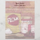 Personnalisez cette en-tête avec votre propre nom ou texte. Dessin multimédia d'une scène de cuisson vintage, avec un sac de farine, une cannelle de sucre, un filtre à farine, des oeufs, une cuillère en bois, etc.