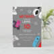 Level up to 10 with this video game themed birthday photo invitation! Featuring a sleek grey background with game consoles all around, this modern design is perfect for young gamers. The back of the invitation is fully customizable with your favorite photo and party details.