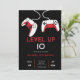 Level Up 10 video game birthday party invitation featuring a bold black background, two white game consoles, and striking red accents. A modern, high contrast design perfect for celebrating a gamer’s 10th birthday in epic style.