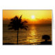 Photographie du soleil se levant sur l'océan. Un palmier majestueux se balance dans la brise douce. Le soleil levant donne à l'océan une lueur dorée.