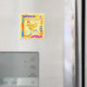 Vous adorerez cet adorable et coloré aimant frigo d'art de poulet jaune. Chick Power est un art peint à la main original avec une série de poussins sassy qui s'amusent. "Kick up Your Heels" est une poussette qui lève les talons avec un collier de perles violettes, tenant un sac vert et rose fushia rayé et portant des chaussures de pompes bleues avec des points roses. Elle est sur un arrière - plan jaune entouré par les mots "Chick Power" en haut et "Kick Up Your Heels" en bas. L'ensemble du design est encadré par une bordure serpentine fantaisiste créée en jaune, vert, fuchsia et d'autres couleurs. Aimant entièrement personnalisable.