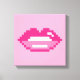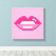 Lèvres roses modernes baiser pixel art toile imprimé. Décor mural coloré tendance pour la maison, la boutique, le bureau etc., par exemple salon de beauté ou magasin de mode. Design Pixelé dans différentes teintes de couleur. Couleur arrière - plan personnalisable et taille de carreaux pour s'adapter à votre intérieur. Fille pixelart, lèvres baisées rouges avec rouge à lèvres.