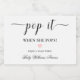 Let your family and friends toast the arrival of your sweet baby with these 'Pop it when she pops' sparkling wine favour tags. The tags feature a calligraphy pop it heading with a minimal design. The script 'Pop it" heading is an image that cannot be edited. All of the other text is fully editable. For more advanced customization of this design, simply select the "Customize It" button above.