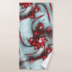 fractale rouge qui a acquis une forme qui rappelle certains lézards, grenouilles maigres ou reptiles sur une texture graine grise grise bleutée.