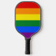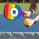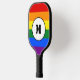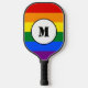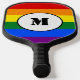 Pickleball Paddle with LGBT (lesbian, gay, bisexual, and transgender people) rainbow stripes pride flag, striped pattern with customizable monogram template design
