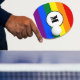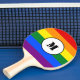 Ping Pong Paddle with LGBT (lesbian, gay, bisexual, and transgender people) rainbow stripes pride flag, striped pattern with customizable monogram template design