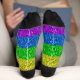 LGBT flag vibrant rainbow glitter sparkle on black Socks. Personalize unique fashionable sparkly gift for her and him. Sparkly LGBT flag in vibrant red, orange, yellow, green, blue and purple vibrant glitter sparkles. *photo of sparkles glitter!