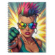 A colourful vibrant woman in rainbow sunglasses LGBT Lesbian Mohawk Uppercut Pop Art notebook .