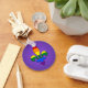 Round Keychain with fleur-de-lis (fleur-de-lys or lily flower) symbol with rainbow stripes from LGBT (lesbian, gay, bisexual, and transgender people) flag, gay pride design