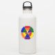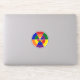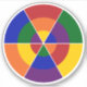 Celebrate your LGBT pride with a modern geometric rainbow pattern. A circle is divided into 6 wedges, each slice containing 3 colours which rotate from one piece to the next. The top centre, bottom right and left feature red, orange, and yellow. The top left and right and bottom centre feature green, blue, and violet.