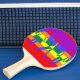 Let the games begin! LGBT Pride symbol on a ping pong paddle. Cool! Rainbow people and the Lambda symbol... Very colourful!