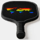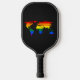 Pickleball Paddle with LGBT (lesbian, gay, bisexual, and transgender people) rainbow stipes map of world, rainbow pride design, by pinkbrickroad