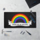 Mat de bureau avec LGBT (lesbiennes, gays, bisexuels et transgenres) bandes arc-en-ciel, drapeau gay pride, texte modèle "Ce sont mes couleurs", par pinkbrickroad