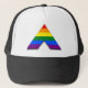 Black Trucker Hat with straight LGBT (lesbian, gay, bisexual, and transgender people) ally pyramid symbol rainbow stripes pride flag