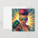 Pop art comic book style woman with undercut giving an upper cut pow punch rainbow lgbtqia+ sunglasses blank notecard.