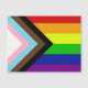 The "Progress" variation of the Rainbow flag adds a chevron along the hoist that features black, brown, light blue, pink, and white stripes to bring those communities (marginalized people of colour, trans individuals, and those living with HIV/AIDS and those who have been lost) to the forefront; "the arrow points to the right to show forward movement, while being along the left edge shows that progress still needs to be made."