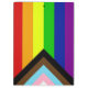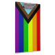 The "Progress" variation of the Rainbow flag adds a chevron along the hoist that features black, brown, light blue, pink, and white stripes to bring those communities (marginalized people of colour, trans individuals, and those living with HIV/AIDS and those who have been lost) to the forefront; "the arrow points to the right to show forward movement, while being along the left edge shows that progress still needs to be made."