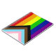 The "Progress" variation of the Rainbow flag adds a chevron along the hoist that features black, brown, light blue, pink, and white stripes to bring those communities (marginalized people of colour, trans individuals, and those living with HIV/AIDS and those who have been lost) to the forefront; "the arrow points to the right to show forward movement, while being along the left edge shows that progress still needs to be made."