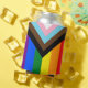 Can Cooler: Rainbow Flag & the "Progress" variation adds a chevron along the hoist that features black, brown, light blue, pink, and white stripes to bring those communities (marginalized people of colour, trans individuals, and those living with HIV/AIDS and those who have been lost) to the forefront; "the arrow points to the right to show forward movement, while being along the left edge shows that progress still needs to be made.