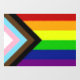 The "Progress" variation of the Rainbow flag adds a chevron along the hoist that features black, brown, light blue, pink, and white stripes to bring those communities (marginalized people of colour, trans individuals, and those living with HIV/AIDS and those who have been lost) to the forefront; "the arrow points to the right to show forward movement, while being along the left edge shows that progress still needs to be made."