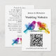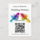 Presenting the Wedding Website Address Card from the Rainbow Lovebirds: Watercolor Wedding Suite, a chic and practical way to share the details of your special day. The front of the card features a vibrant backdrop adorned with the exotic beauty of the Rainbow Lovebirds artwork. This captivating design showcases two intricately depicted birds facing each other amidst the vibrant colours of the LGBTQ+ pride flag, symbolizing unity, inclusivity, and love. Prominently displayed is the website address, providing guests with direct access to your wedding information. For added convenience, a QR code is included, offering a modern and efficient means of accessing the website.