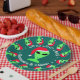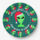 A dark green background and crisp white text makes this personalized alien Santa Christmas theme paper plate a sure winner for your Christmas party. If you enjoy geek humour or you are a ufo buff, these LGM in a Santa hat holiday plates will bring a smile to your festivities at home or at the office.