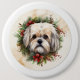 Lhasa Apso Christmas Wreath Festive Pup 6 Inch Round Button