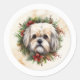Lhasa Apso Christmas Wreath Festive Pup Classic Round Sticker