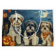 Unleash the spooky spirit with this eerie Halloween design featuring a pack of dogs under a dark, moonlit sky, surrounded by flying bats and glowing pumpkins. Perfect for those who love a touch of frightful fun with their furry friends!