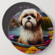 Lhasa Apso on a Paddle: A Scenic Adventure 6 Inch Round Button