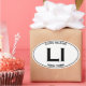 This Euro style oval sticker includes the letters "LI" as well as subtitles "LONG ISLAND" and "NEW YORK". Long Island is known for its beaches, sharks, saltwater fishing, and other attractions.