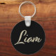 Ein sehr schöner edler personalisierter Button Schlüsselanhänger im whitegold Lettering Look auf schwarz für Liam.