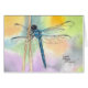 Libellule bleue sur un arrière - plan de jardin d'arc-en-ciel.