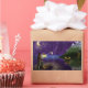 Fille sur un bateau qui sort une fée de sa lanterne sur l'île mystique.
