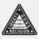 Triangle Sticker that you can put on your gear to let people know your priorities. God, Family, Country. Liberty, Guns, Religion.