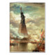 Vintage illustration of the Statue of Liberty standing tall against the clouds and amidst a sea battle