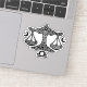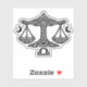 A balanced sigil carved from interlocking Celtic knots — the Libra scales suspended between twin crescent moons. The glyph anchors the design like a quiet verdict. This piece carries the calm, deliberate symmetry of the air sign, rendered in haunted BurnsInHell inkwork for those who walk the world seeking equilibrium and hidden meaning.