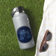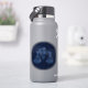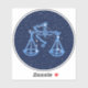 Sticker featuring the symbol for Libra in soft silver blue, overlaid with the stars of the constellation, against a starry sky background graded from deep midnight blue to black