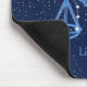 Mouse pad in the zodiac symbol for Libra in soft silver blue, overlaid with the stars of the constellation, against a starry sky background of deep midnight blue