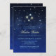 Elegant birthday party invitation with the libra constellation on a starry sky.