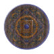 This Libra themed mandala depicts a sapphire stone surrounded by the symbol for the sign, the constellation, and the alchemical symbol for Air among filigree and weaves.