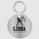 This personalized keychain features a silver metallic background along with the Libra Man with scales zodiac symbol. Choose from three different styles.