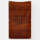 A Libra Zodiac symbol on a rich brown mahogany wood grain style design texture print background. A modern classy racy design for a great custom birthday gift idea.