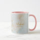 Elegant astrology theme zodiac Libra the Balancing Scales star sign Coffee Mug on subtle ice blue mottled cosmic background. Popular font typography monogram name & text details can be easily personalized or deleted. A touch of celestial faux gold glitter adds a little glamour & mystique. Available in all 12 signs to create a matching set - with option to customize interior & handle colour via the Zazzle edit menu.