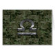 A Libra Zodiac symbol on an olive green digital camouflage print background. A modern urban racy design for a great custom birthday gift idea.