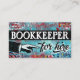 Arty coloré Bookkeeper cartes de visite en turquoise, aqua, rouge, jaune. Libraire pour louer des cartes de visite.