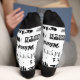 Fun black and white socks with a typographic pattern of different book genres. Ideal for bookworms, librarians, English teachers, authors and writers.