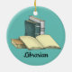 Librarian Biblophile Reader Design Ornament with customizable background colour and text.
